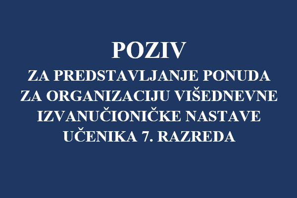 POZIV ZA PREDSTAVLJANJE PONUDA ZA ORGANIZACIJU VIŠEDNEVNE IZVANUČIONIČKE NASTAVE UČENIKA 7. RAZREDA
