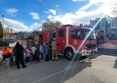 Vatrogasci su nam pokazali postupak evakuacije, objasnili korištenje vatrogasne opreme i informirali nas o preventivnim mjerama kojih se trebamo pridržavati.