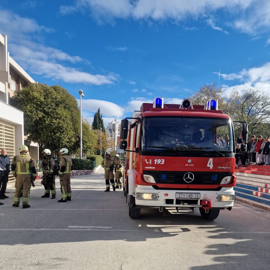 Dana 28. studenog u našoj je školi održana pokazna vatrogasna vježba koju su proveli vatrogasci Javne vatrogasne postrojbe grada Splita. Ovakve se vježbe organiziraju s ciljem edukacije učenika o postupcima u slučaju požara i ostalim opasnim situacijama.